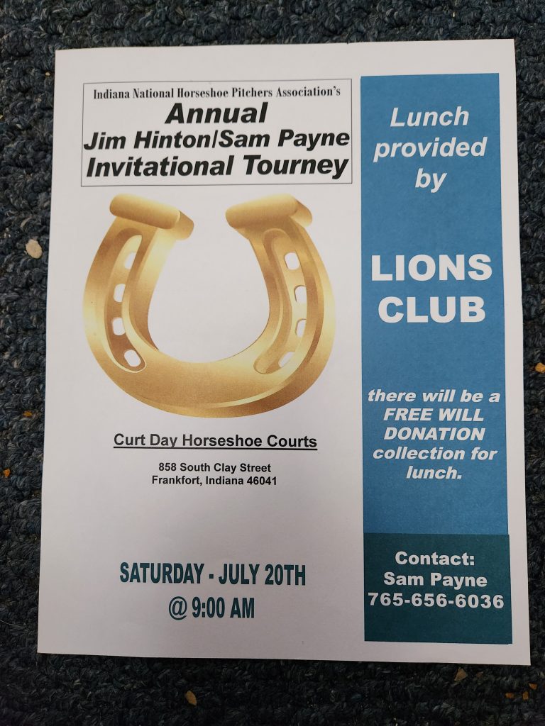 The annual Jim Hinton/ Sam Payne Invitational Horseshoe Tourney is scheduled for July 20th in Frankfort. It’s one of several on the Indiana Horseshoe Pitchers Association circuit. Local organizer Sam Payne says the action starts at 9 am sharp at the Curt Day Horseshoe Courts at 858 South Clay Street. The Frankfort Lions Club will […]
